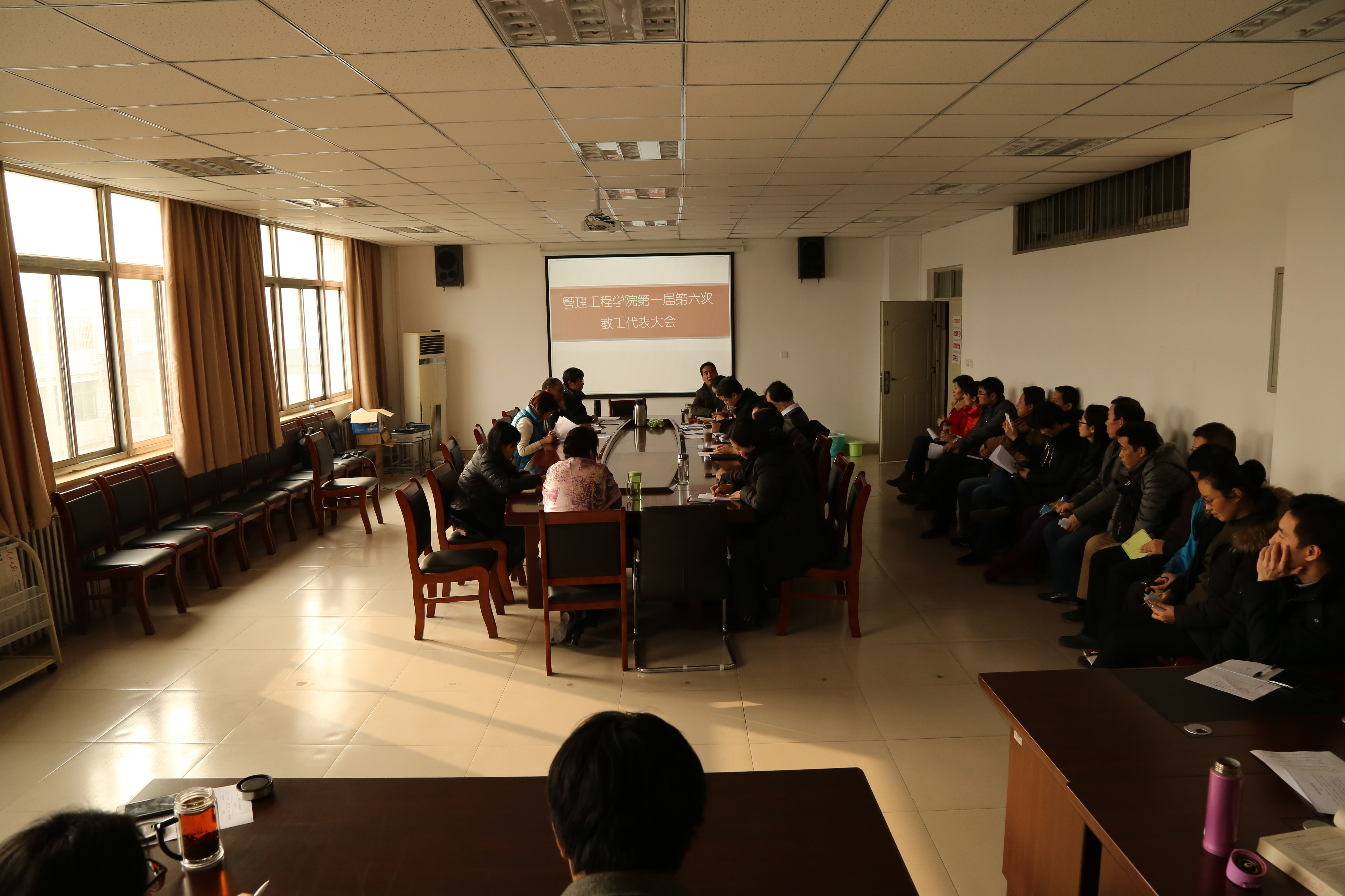 2016年12月29日下午2:00,我院在信息楼B511召开bet365官方贴吧第一届第六次教职工大会,学院全体教职工参加会议。会议表决通过了我院《bet365官方贴吧人员二次分配方案》(2016年修订版)。段文平院长做年度工作报告,分工会主席吴剑锋做工会工作总结,工会委员陈丽莉做年度财务报告。全体教工审议有关报告并表决通过。