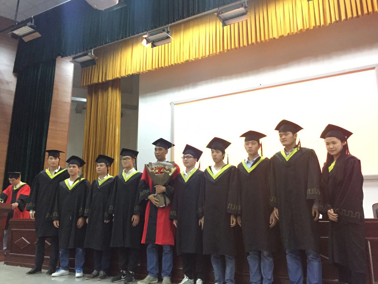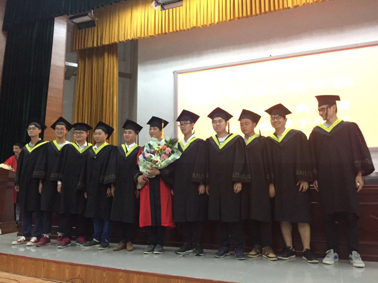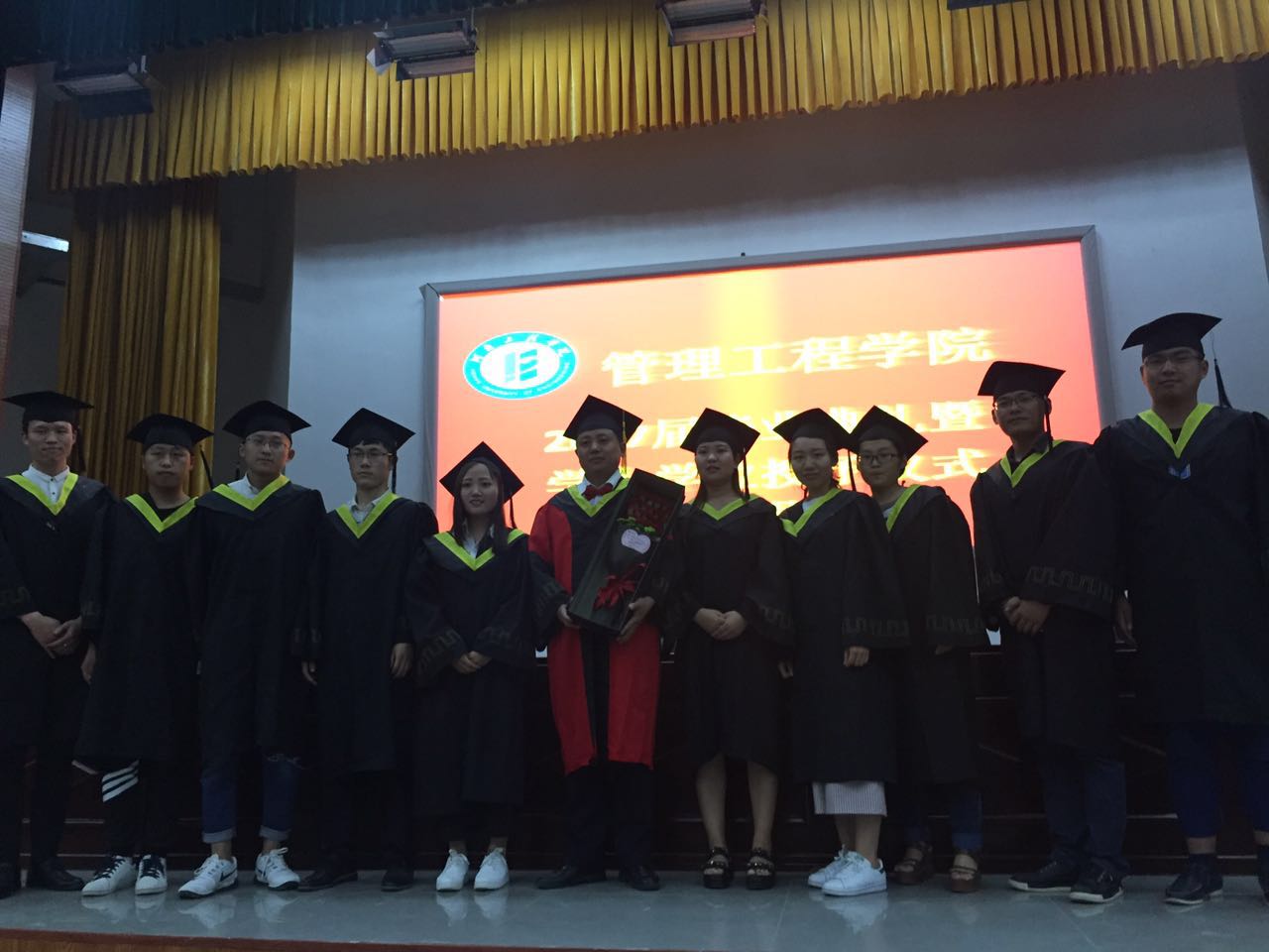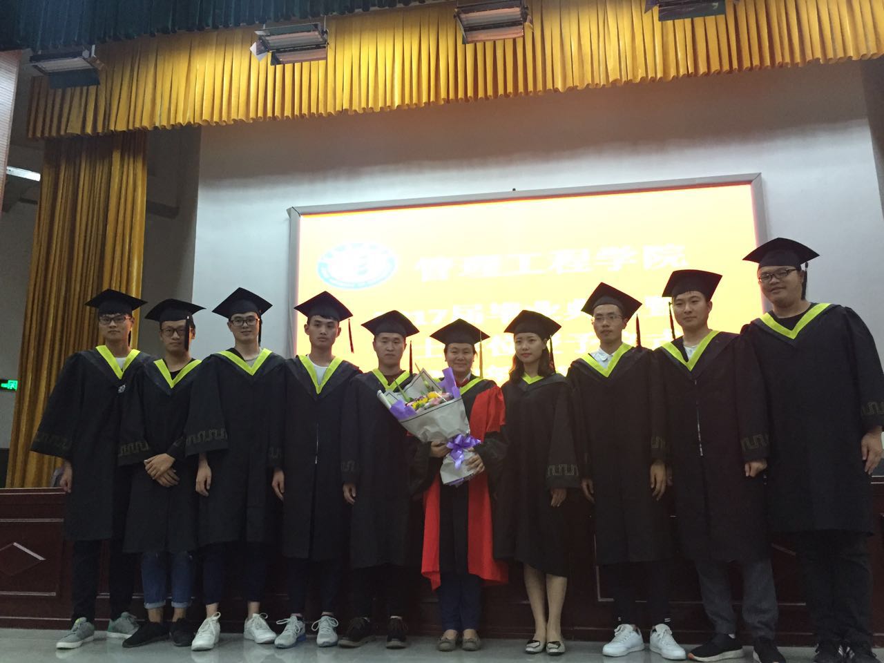 仪式在雄壮的国歌声中拉开了帷幕。院党总支谢国军书记代表学院党政致辞,表达了对本科毕业生衷心的祝愿和热切的祝福;随后,段文平院长宣读了关于授予2017届工业工程专业学士学位的决定的有关文件;副院长孙双全教授宣读了bet365官方贴吧省级,校级优秀毕业生,院级优秀本科毕业论文、院级优秀本科毕业论文指导教师的表彰决定;并宣读研究生名单。在场领导向省级、校级优秀毕业生代表、优秀本科毕业论文获得者、考取硕士研究生的同学、优秀本科毕业论文指导教师颁发证书及纪念品;工业工程1341王一丹同学代表全体毕业生发言,感谢母校、全体教师四年来的辛勤付出;回忆自己的大学生活,并对学弟学妹衷心祝愿。在校生代表工业工程1541曲艺同学祝全体毕业的学长学姐们前程似锦、生活幸福、工作顺利;教师代表高顺成教授代表全体教师向2017届毕业生表达了全体教师对全体毕业生最真实的祝福。接着由段文平教授向毕业生授予学士学位。衷心祝福bet365官方贴吧全体毕业生前程似锦,鹏程万里,共同创造出更加美好的明天!最后由毕业班班学生上台向导师献花合影留念,表达对老师的谢意,在毕业典礼尾声毕业生代表郑帅领带领全体毕业生宣誓,最后共同唱响毕业歌。