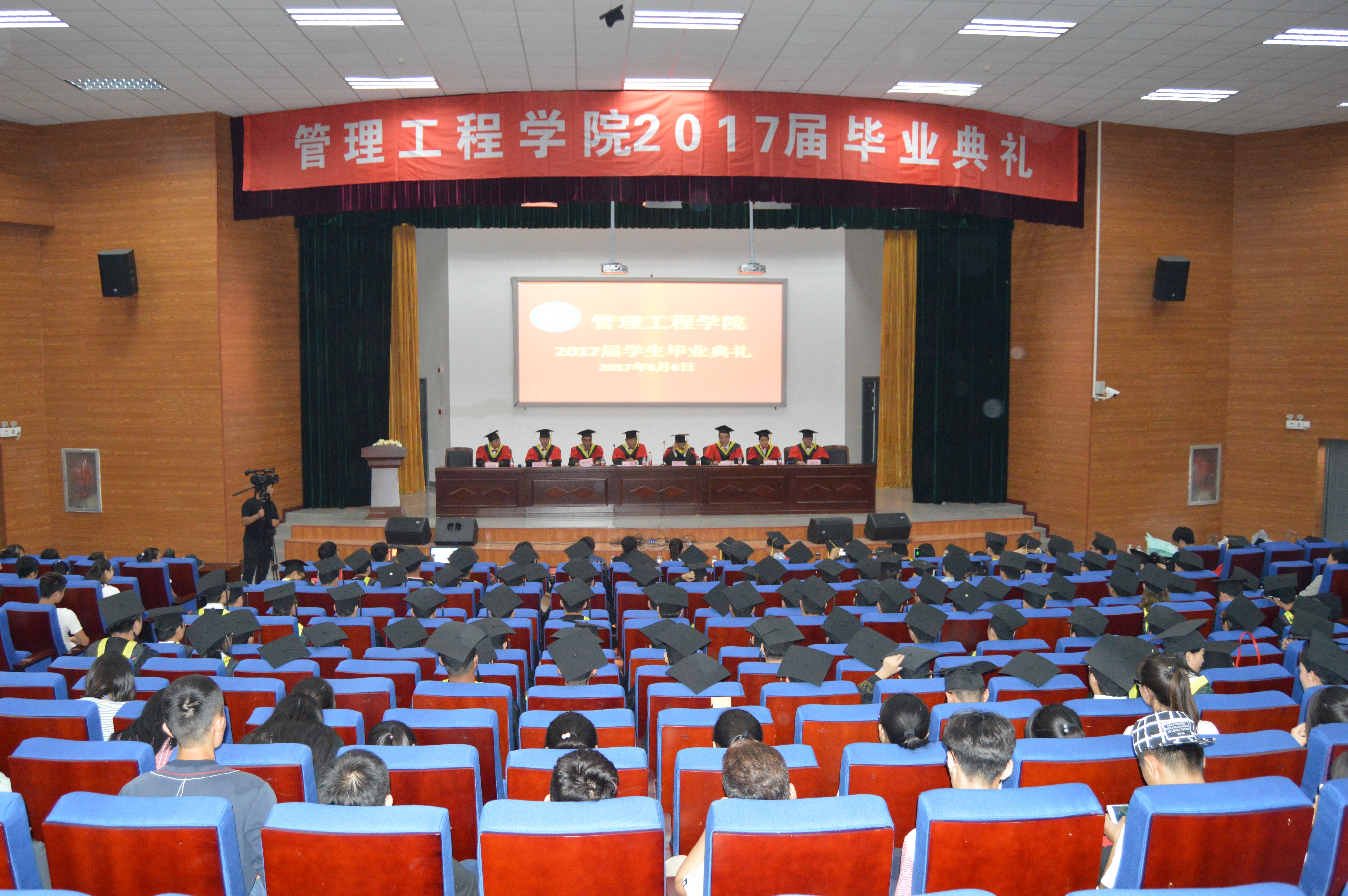 6月6日下午3点,bet365官方贴吧2017届本科生毕业典礼暨学士学位授予仪式在8号楼就业报告厅隆重召开。学院党政领导,全体教师、 2017届工业工程本科毕业生及全体本科在校生近450余人参加了仪式,仪式由院党总支副书记吴剑锋主持。
