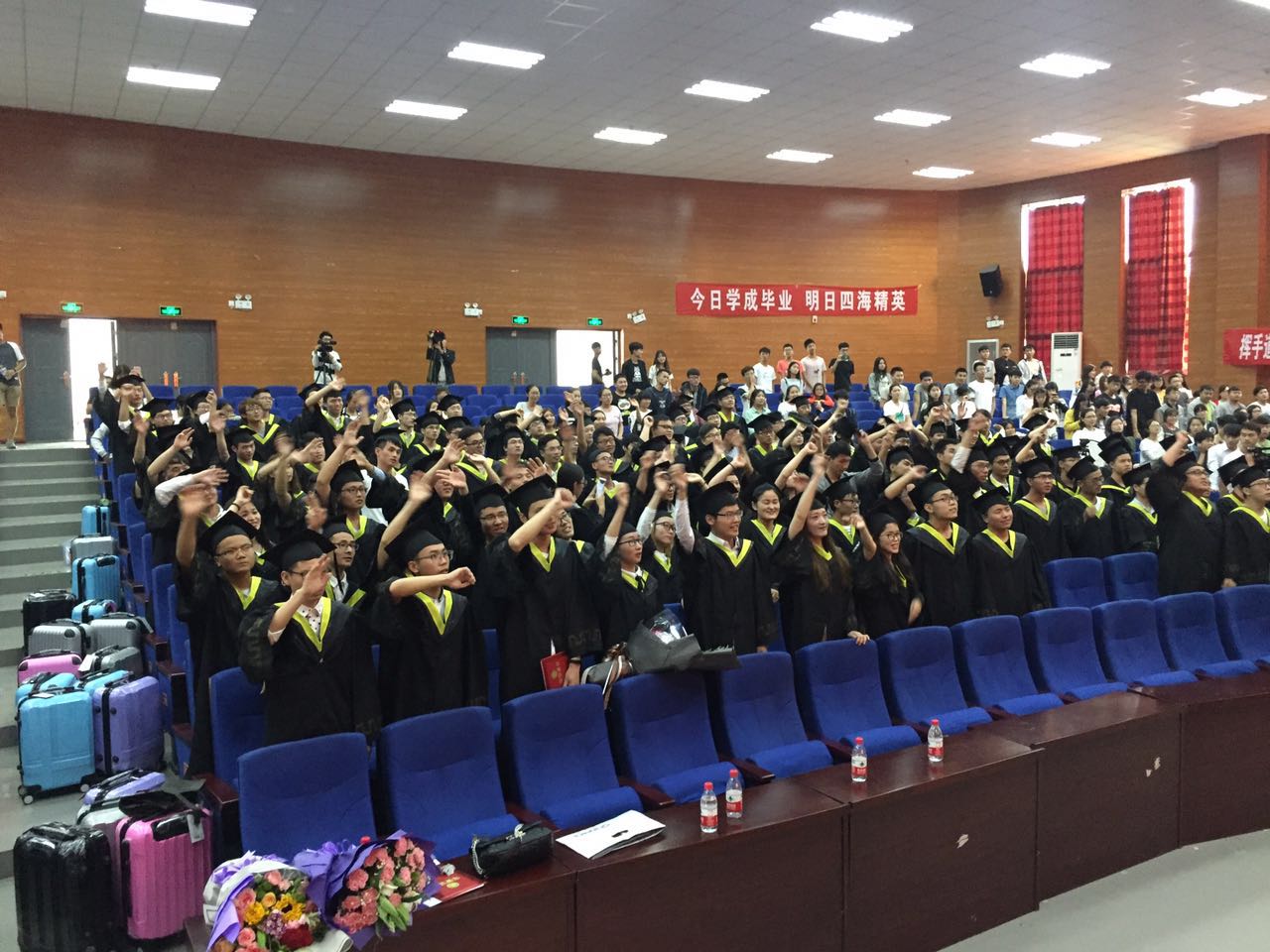 四载的朝夕相处,此刻感受到的是难舍难分的师生情;四载的勤栽桃李,一朝开花结果,有收获的喜悦,更有分别的痛楚。毕业典礼是短暂的,但留给同学们的美好记忆却是永恒的。相信他们一定会带上母校的诚挚祝福、师长的谆谆教诲,用飞扬的激情去点燃青春之火,用充满朝气的激情去拥抱明天的太阳!