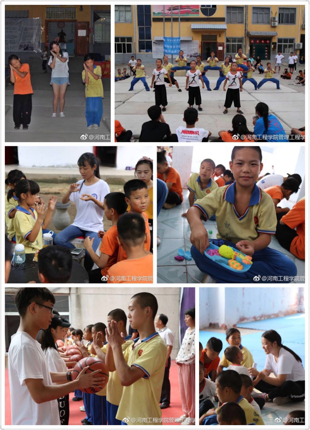 登封希望文武学校是我院校外实习基地。学校共有一百余名学生,其中有近二十多名孤儿,三十余名来自单亲家庭,其余多为贫困学生。在2016年我校春季运动会上,受邀与bet365官方贴吧共同表演了“龙子呤”团体操节目。在近4天的社会实践中,队员们结合文武学校的课程安排,精心设计了体育、文艺、晚间辅导等课程,并组织开展了课外捏橡皮泥大赛、文艺晚会、趣味运动会。