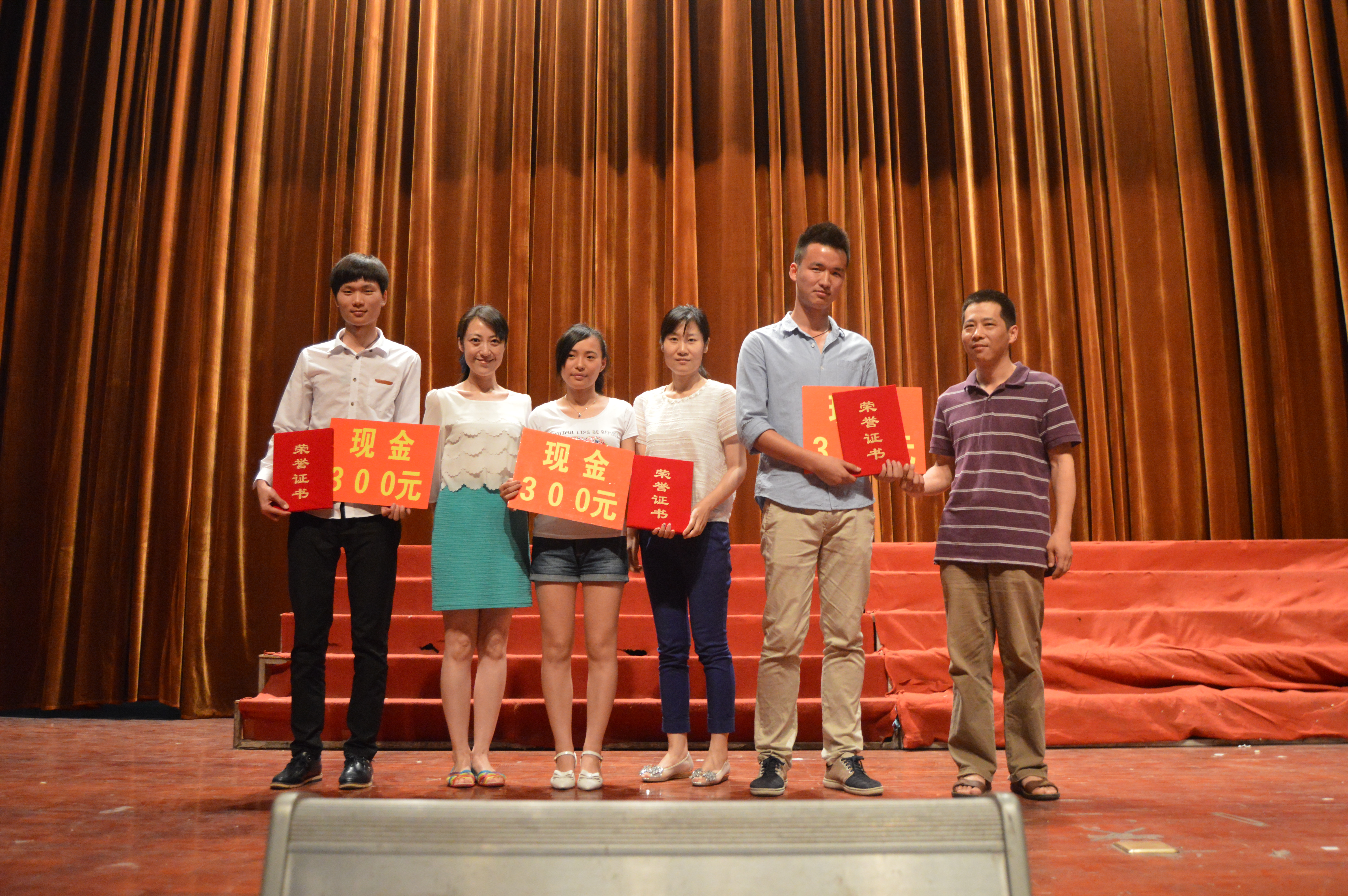 比赛伊始,院党总支书记谢国军老师首先进行了题目为“让梦想在激情中飞扬”的主题演讲,阐述了我校及我院当前面临的机遇和挑战,号召广大学子抓住机遇,紧跟时代步伐,奋发图强、励精图治,通过实践成就梦想。本次比赛参赛的每个班里都演唱两个歌曲,第一首为我校校歌,第二首为各班自选歌曲。歌声嘹亮,气势磅礴,每个班里都把校歌的恢宏气势演唱的淋漓尽致。在自选歌曲中,各个班级所唱曲目有的细柔婉转,有的慷慨激昂,有的队形多变,给全院师生带来了一场视觉及听觉的精神大餐。比赛间隙,党总支吴剑锋书记还为全体观众奉献了一曲《我和我的祖国》,让整个比赛锦上添花。经过激烈的角逐,最终我院13级经管专业凭借着团结和扎实的唱功荣获了合唱比赛一等奖,工程1441班和电商1433班并列获得二等奖。我院部分教师为他们颁发了奖项。