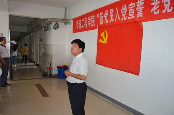 2015年6月26日上午10点,bet365官方贴吧“新党员入党宣誓,老党员重温誓词“仪式在信息楼B5楼东大厅举行。院党总支书记谢国军、院长段文平、副院长孙双全、院党总支副书记吴剑峰、学院全体教工党员、学院在校生党员和预备党员参加了仪式。本次活动由院党总支副书记吴剑峰主持。首先, 院党总支书记谢国军发表致辞。随后,在院党总支副书记吴剑峰的带领下所有党员进行宣誓,宣誓过程庄严凝重,以此表达他们对党最真挚的感情。