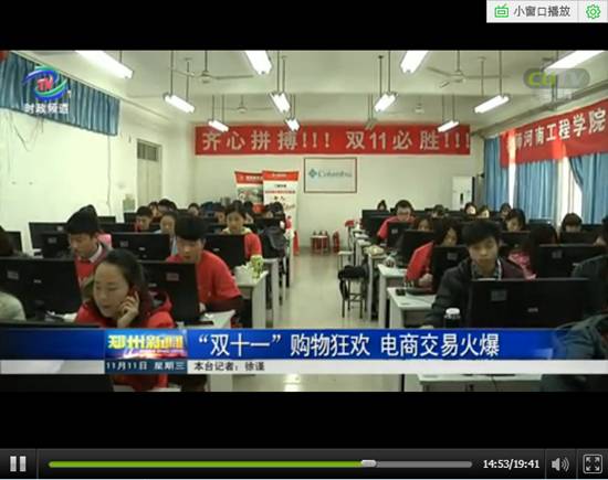 当前,双11购物节已经成为我国电商领域的盛宴,今年为有效配合双11活动,我校bet365官方贴吧发挥专业特长,与相关企业配合,发动电商专业同学参与双11活动;同时,也很好的实现了教学实习改革,取得了初步成效,据当天数据反映,自11月11日凌晨开始的十分钟内,销售额即突破1000万的,截止下午14时,销售额达到4500万,该活动得到了新浪网、郑州电视台等多家媒体的报道。