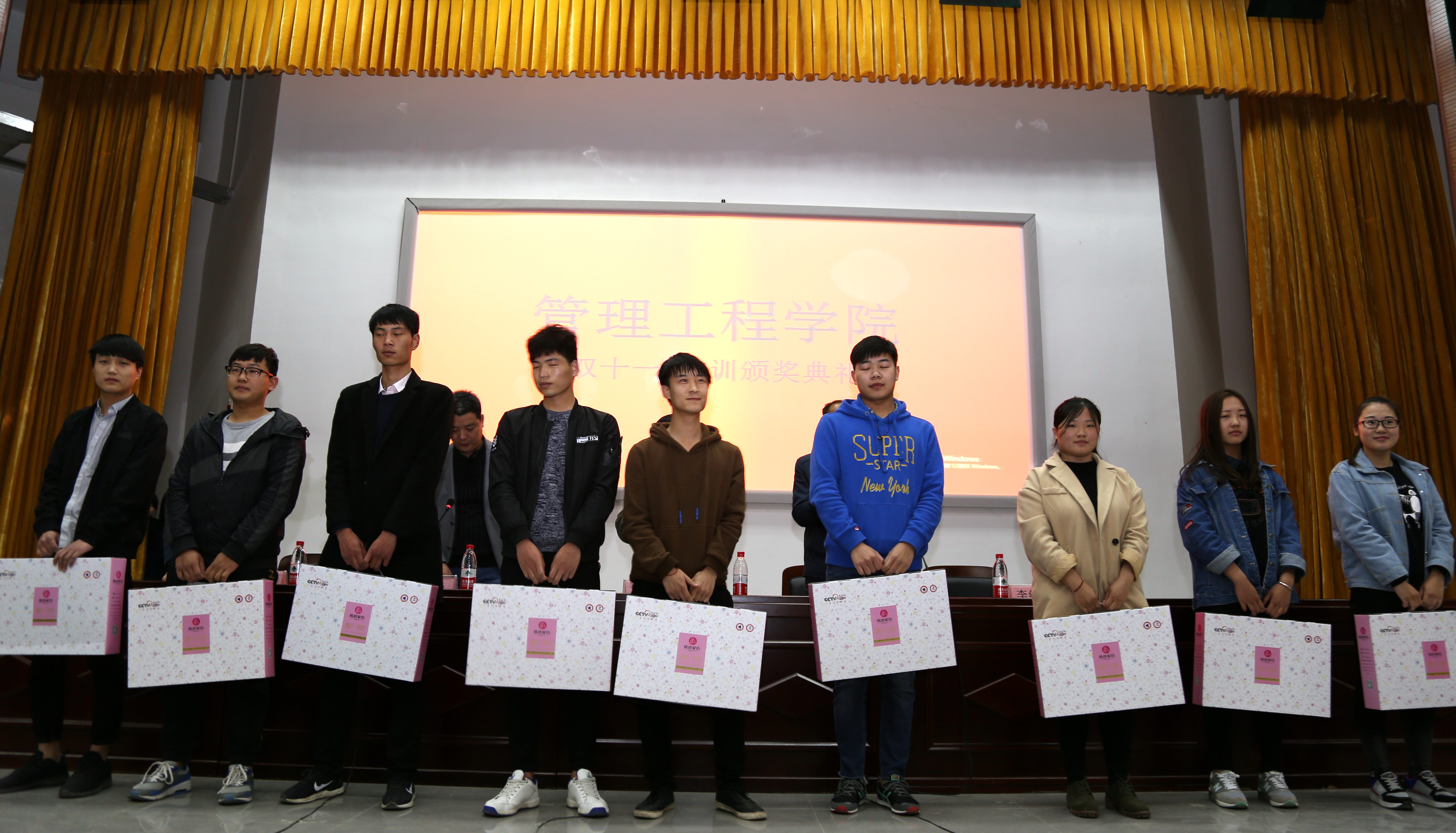 表彰大会上,谢书记首先发表致辞,他对去年参加双十一实训的老师和同学们表示慰问,并对今天受表彰的同学表示祝贺,指出双十一实训目前是我校校企合作的典范,通过此次活动,夯实了专业基础,学到了实践知识,希望大家再接再厉为学院的专业建设做贡献。副院长孙双全宣读了表彰决定;随后,参加实训的电商1534班的吴静同学,经济信息管理专业1532班的杨景园同学,以及电子商务教研室主任武化岩老师分别做了大会发言,他们结合实训的亲身经历谈了自己深切的体会,鼓励在校的16级同学,一定要虚心学习,积极投身到2017年的双十一实训当中。