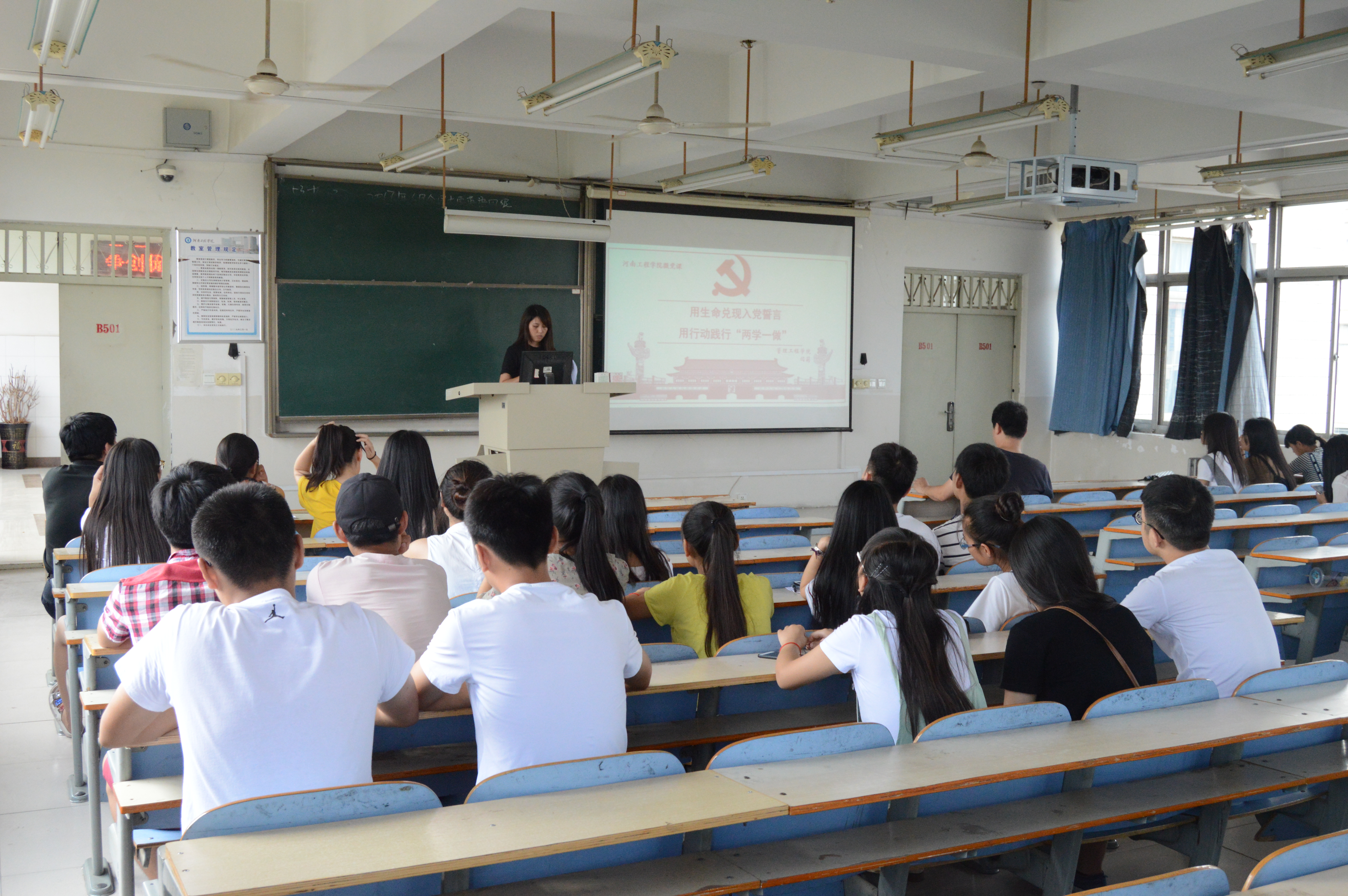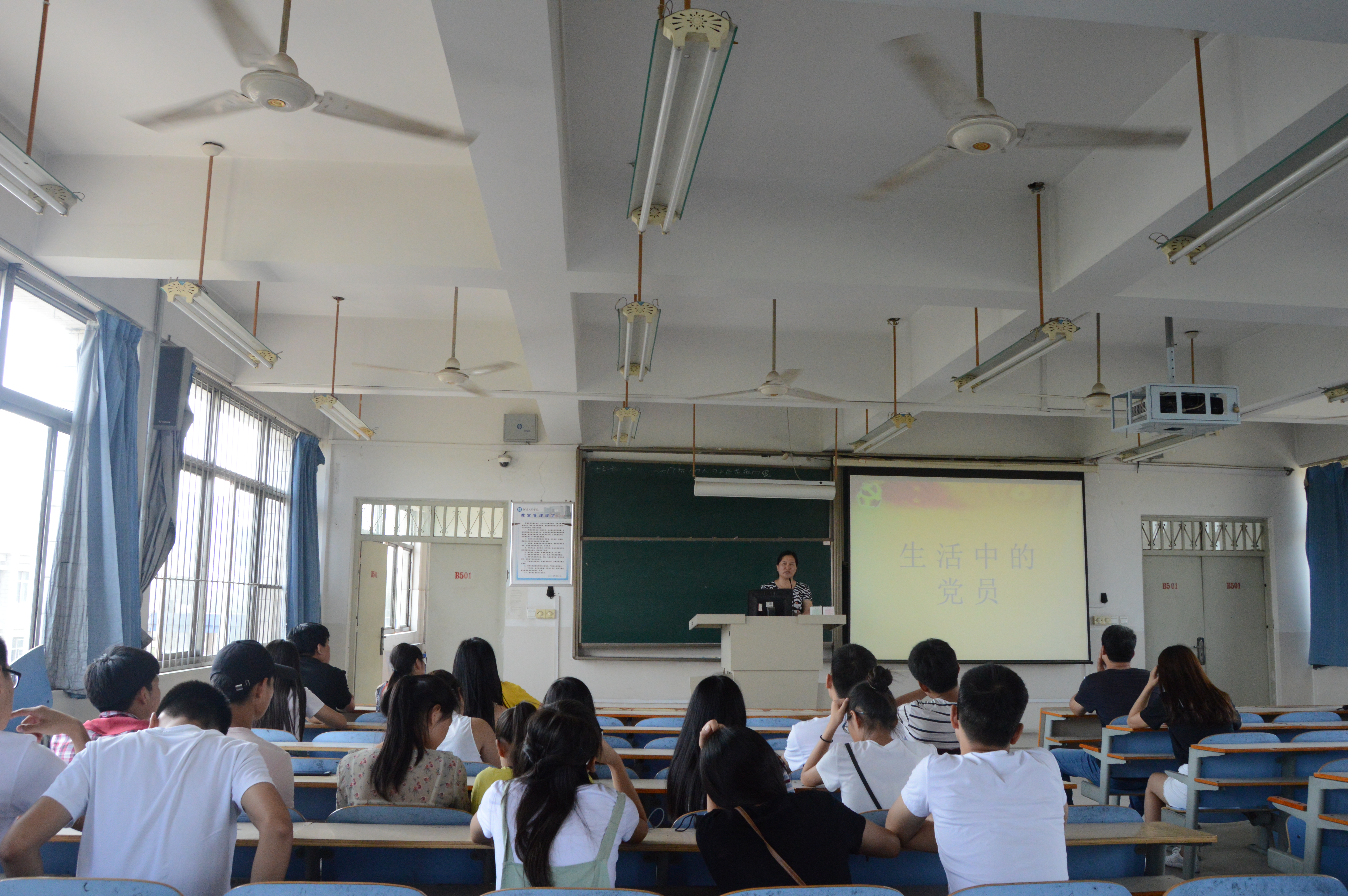 会议首先由党总支书记谢国军发表了重要讲话,做了以“不忘初心”为主题的专题党课。他希望全体党员坚定理想信念,不忘入党初心,勇担时代使命,加强党性修养,做讲政治、有信念,讲规矩、有纪律,讲道德、有品行,讲奉献、有作为的合格党员。第三支部书记陈亮老师深入浅出不失风趣为学生党员讲解了“一带一路”的有关知识,使与会学生党员对国家战略有了更为深层次的认识;紧接着第一支部书记闫莉老师进行了以用生命兑现入党誓言,用行动践行“两学一做”为主题的微党课,提醒大家不忘誓言,牢记使命,党总支副书记吴剑锋以“吃亏”为主题阐述了吃亏是福的真理,号召大家乐于奉献,敢于吃亏,苦尽甘来;第二支部书记葛鑫鑫老师以“生活中的党员”为题为学生党员宣讲,并把“一粒麦子不落在地里死了,仍旧是一粒,若是死了,就结出许多子粒来”的话赠与大家。