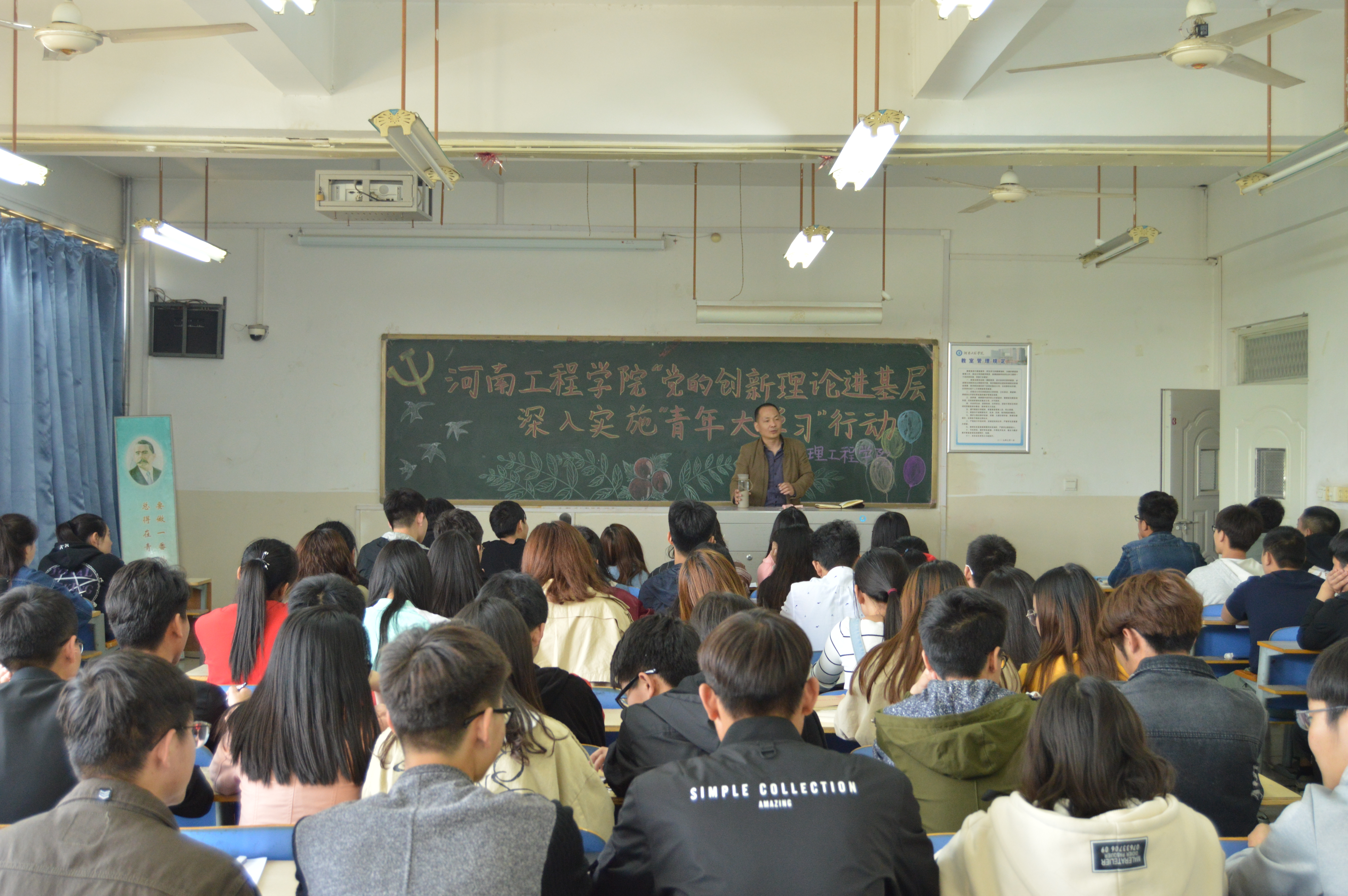 为深入学习贯彻习近平新时代中国特色社会主义思想,推动广大团员青年认真学习十九大精神,校团委第四先锋宣讲团于4月16日中午在信息楼A303教师,为bet365官方贴吧学生会全体干部进行了专题宣讲,第四先锋团成员院团总支书记李二亮老师主讲,学院团总支学生会干部、团支部干部100多人参加了报告会。